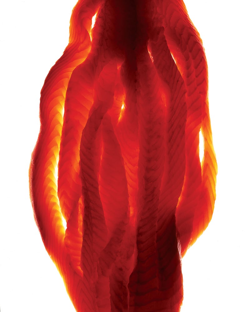 Former Dwell photo editor turned photographer Aya Brackett—who shoots food and still-life editorial for several of the same publications that Franzen does—says her assignments call for work that’s “beautiful and approachable” with a general trend toward natural light. Brackett conceptualizes her shoots the way she would compose a painting, she says, thinking about the play of color blocks, texture, and daylight-balanced strobes (or actual daylight when it’s available) to re-create a sunlit scene. Her process yields graphically striking photographic stories, and recently a cookbook, focusing on “slow food” and locally sourced organic cuisine. Her favorite work tends to be the “messy” food shots she does for clients like Cherry Bombe magazine, which puts a fashion and fine-art spin on food photography, and a recent personal series about “food that’s fallen to the ground and rendered inedible.”