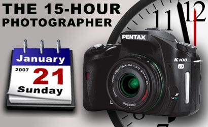 Of those who e-mail us five images from their day, we’ll draw one winner, who will receive a Pentax K100D. This DSLR packs 6.1MP and sensor-based image-stabilization. It comes with two Pentax lenses (an f/3.5-5.6 18-55mm and an f/4-5.6 50-200mm) and a 4GB SanDisk Ultra II SD card. For full details, go to PopPhoto.com/february2007. In all, a prize that’s worth shooting for.