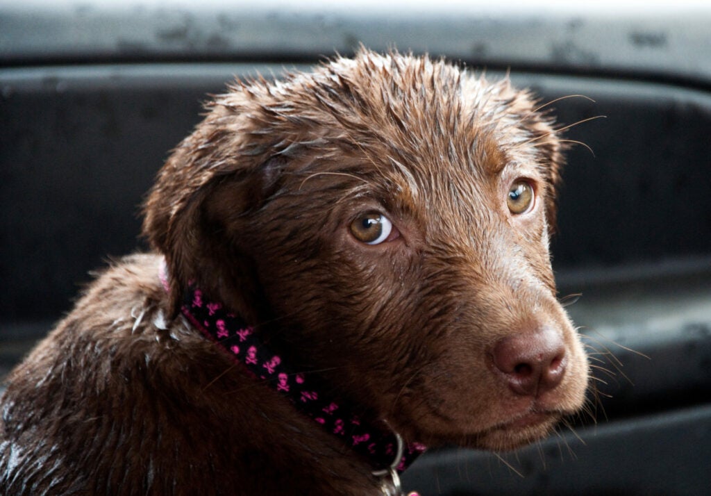 By David Leer 4 month old chocolate lab puppy after experiencing her first western Oregon rainstorm. CAMERA: NIKON D90 FOCAL LENGTH: 105 SHUTTER SPEED: 1/50 LENS: Nikon AF-S DX NIKKOR 18-105mm f/3.5-5.6G ED VR ISO: 1000 APERTURE (F-STOP): 5.6